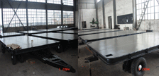 PC3噸~10噸以下小型平板拖車(chē)適用于糧食碼頭,運(yùn)輸袋狀貨物。臺(tái)面前后可配套擋板。